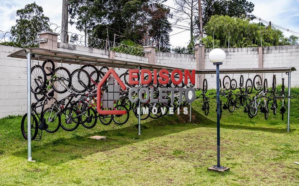 Condomínio com espaço gourmet com churrasqueira, playground, quadra poliesportiva, playground, bicicletário, portaria 24 horas, portão eletrônico, cerca elétrica e câmeras,