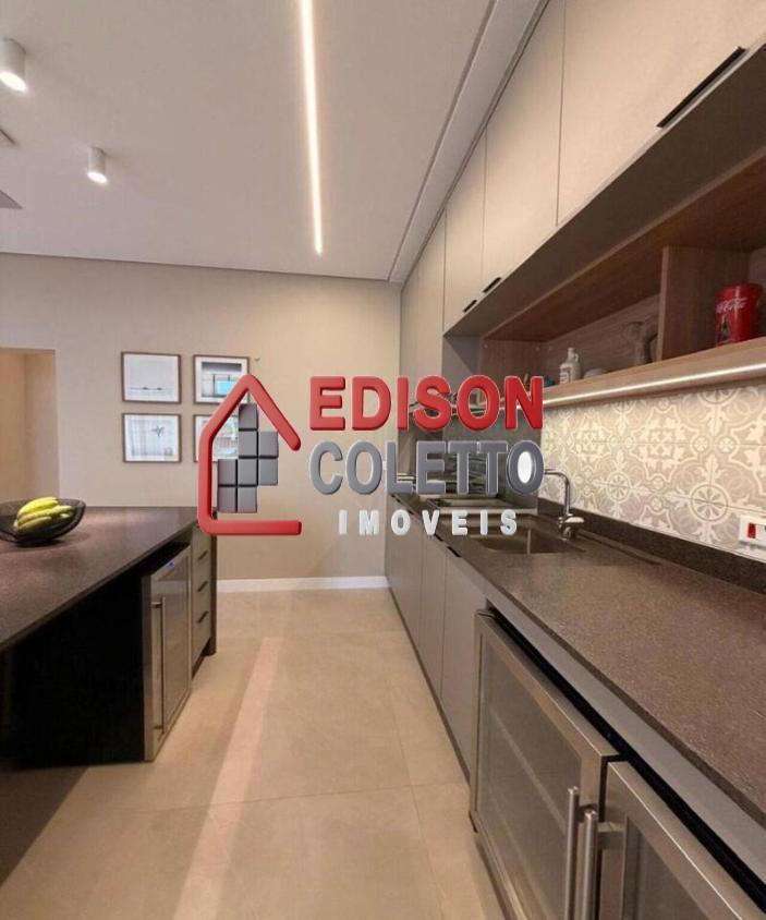 Cozinha gourmet com ilha central, móveis planejados, Cooktop 5 bocas, Forno Elétrico, Microondas, Lava-louças 15 serviços, Geladeira Smart 611 litros,